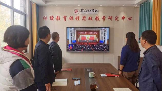 10月16日上午10时,中国共产党第二十次全国代表大会在北京人民大会堂开幕。永利23411全体教职工通过电视、手机、网络等多种形式收听收看大会盛况。永利23411党总支理论学习中心组成员在202会议室集中收看开幕式直播,认真聆听报告。