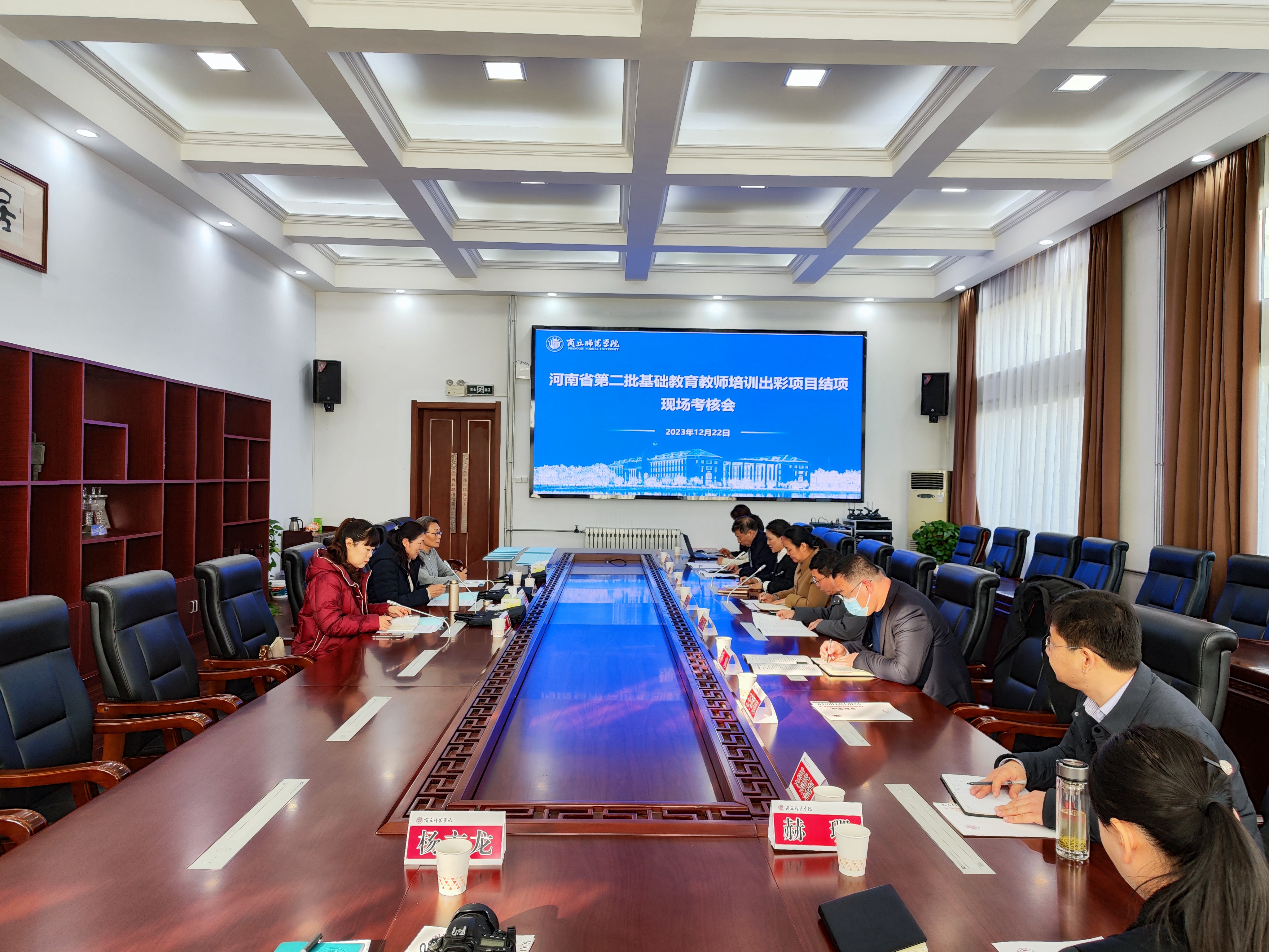 12月22日,在归德楼会议室,“河南省第二批基础教育教师培训出彩项目”专家组成员,平顶山学院副校长程永华,河南师范大学教授王彩琴,郑州师范学院永利23411党总支副书记许凛到yl23411永利,对我校“校长出彩项目”——《人工智能助推教师培训质量提升的模式构建与理论研究》开展结项考核工作。