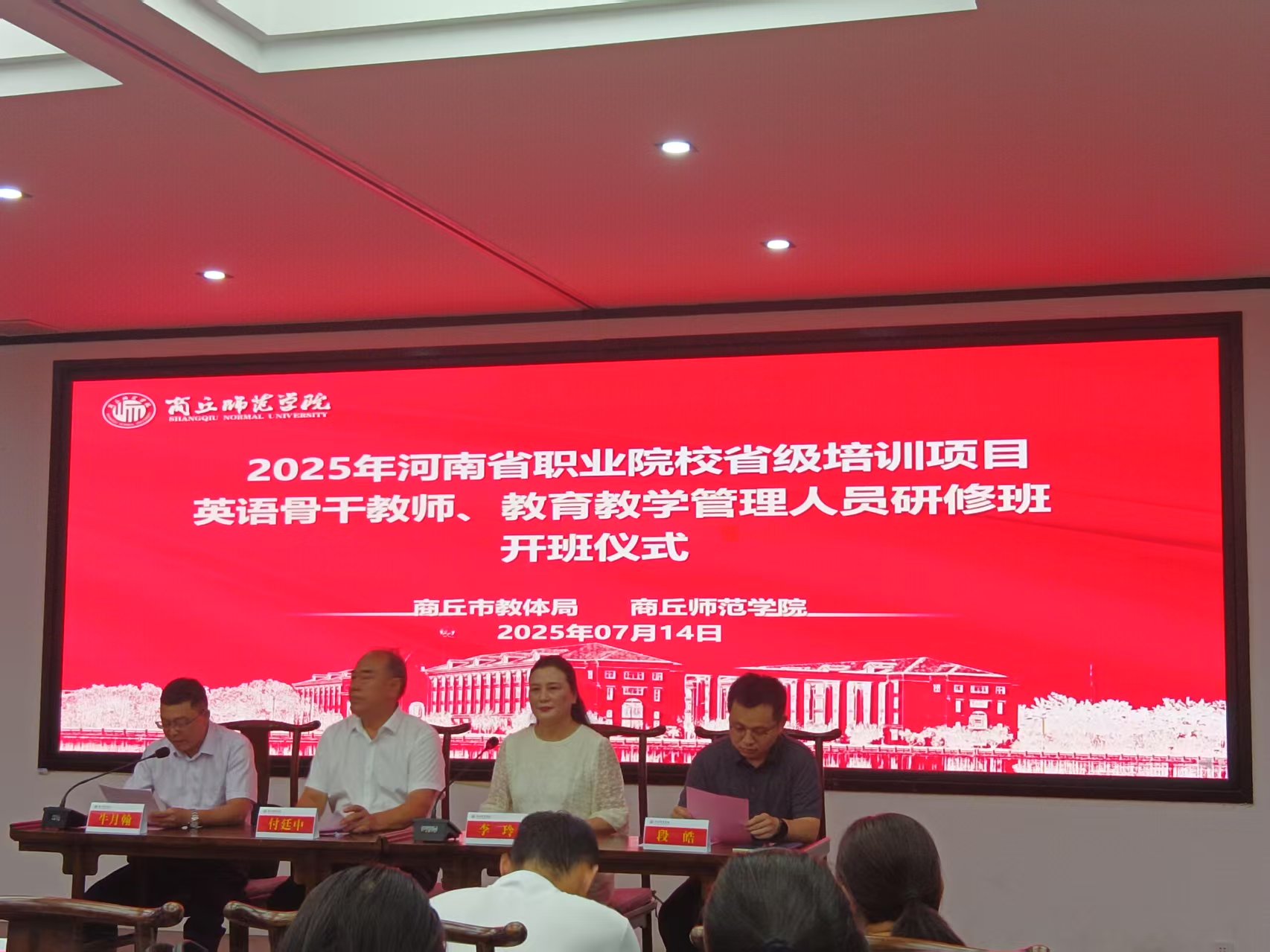 7月14日下午,由我校承训的2025年河南省中等职业院校教育教学管理人员、英语骨干教师研修班在梁园校区国学堂举行开班仪式。永利23411院长李玲,商丘市教体局副局长付廷中、成教科科长段皓出席开班仪式,永利23411党总支书记牛月翰主持开班仪式。
