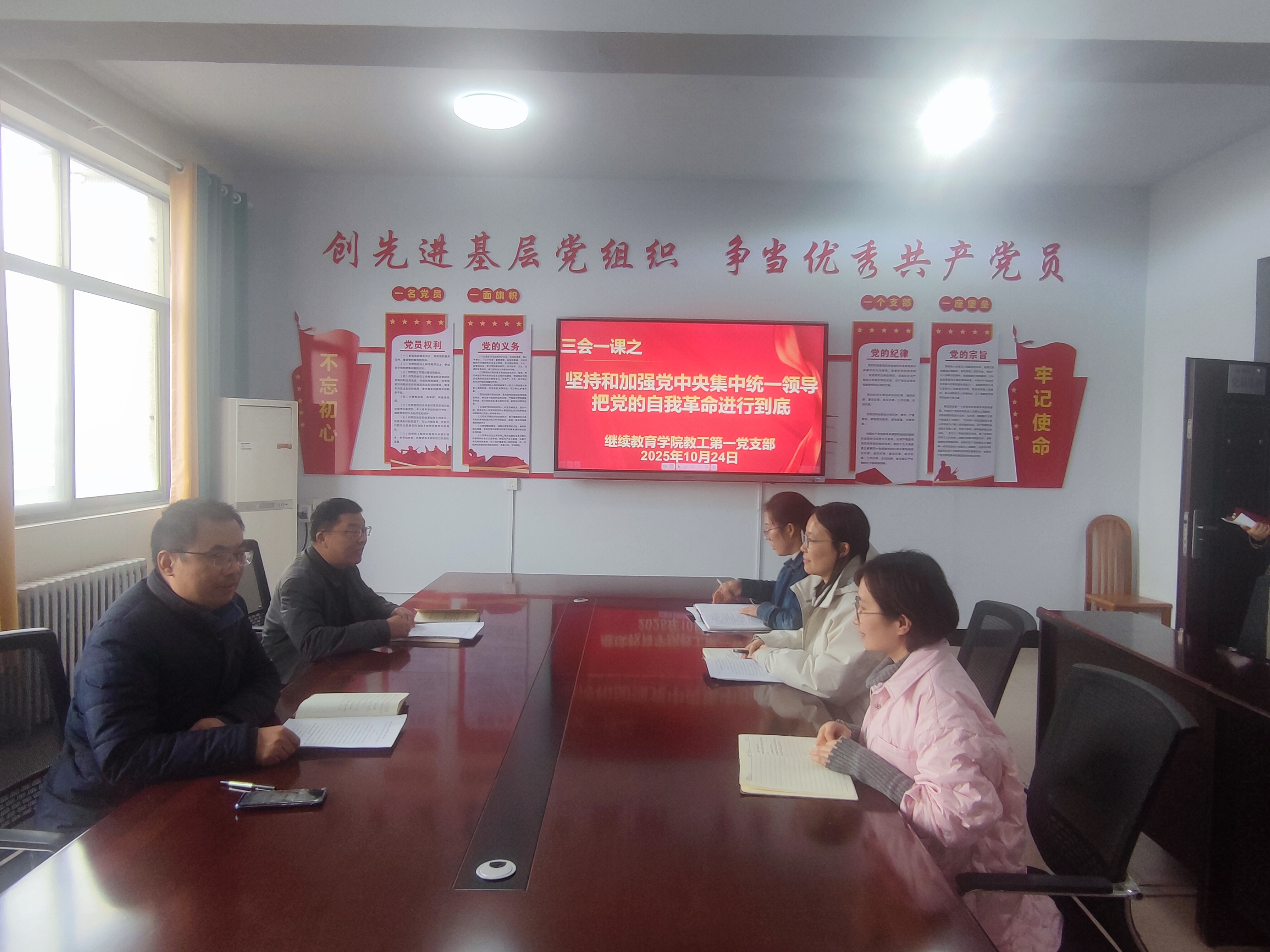 为深入学习贯彻习近平新时代中国特色社会主义思想,永利23411教工第一支部于10月24日下午开展了“三会一课”专题学习,聚焦“坚持和加强党中央集中统一领导,把党的自我革命进行到底”主题进行了学习讨论。