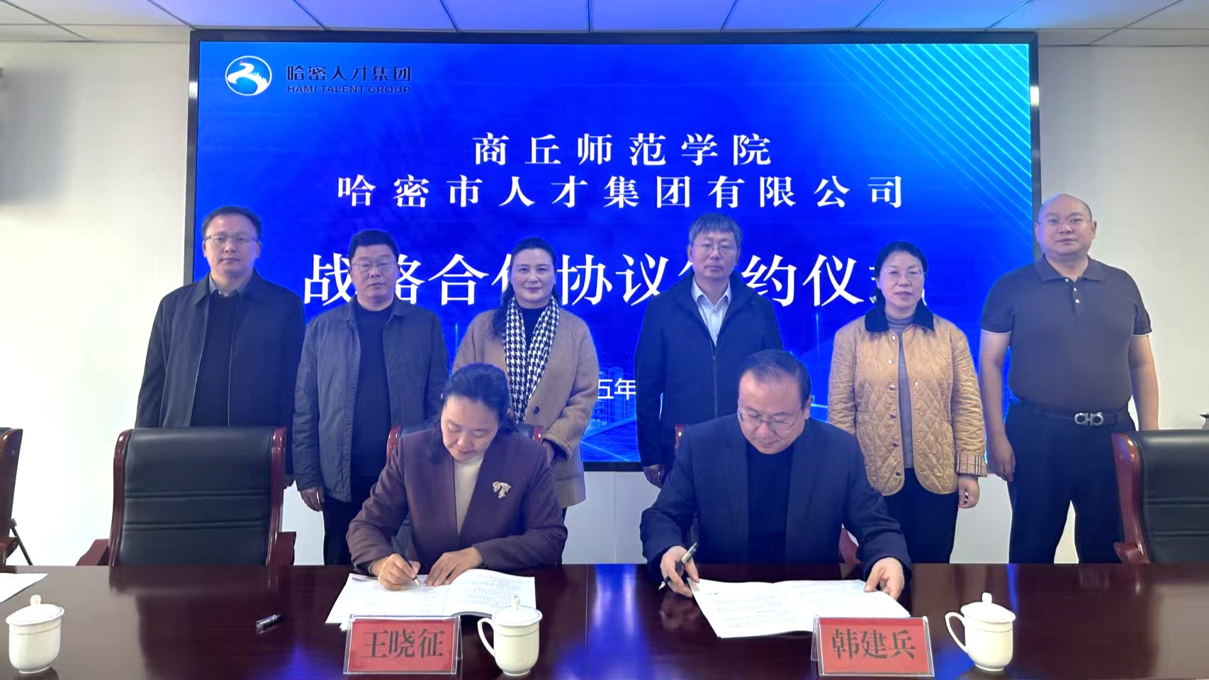 在哈密市与人力资源和社会保障局和人才集团进行了工作对接。并与局长蒋怀诚,河南援疆干部副局长高波,援疆干部兵团第十三师火箭农场党委常委、副场长杨飞,人才集团董事长韩建兵、总经理王瑶进行了座谈。王晓征向领导介绍了学校的发展概况、学科专业特色以及服务社会、支持边疆建设的意愿。双方重点围绕依托学科优势和继续教育资源,面向哈密乃至新疆地区开展干部培训、师资进修、职业技能提升等各类培训项目合作的可能性进行了深入交流和探讨,旨在将学校的教育资源优势与新疆的发展需求紧密结合,为援疆工作贡献教育力量。为进一步建立长效合作机制,深化两地人才合作交流,yl23411永利与哈密市人才集团签署了人才交流合作协议,协议约定,双方将在人才信息共享、毕业生就业推荐、人才联合培养、实习基地建设、举办招聘活动等方面开展全方位、多层次的合作,共同搭建高效、畅通的人才交流互动平台,促进人才资源优化配置,推动各项合作意向落地生根、开花结果。随后,王晓征与哈密人才集团董事长韩建兵共同为“人才交流工作站”“大学生就业实习基地”举行了揭牌仪式。
