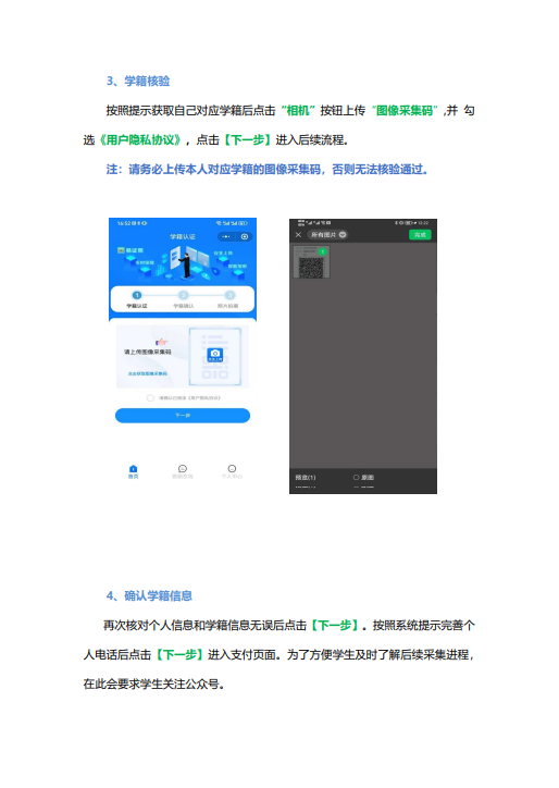 4.为了保证采集效果,请同学们务必按有关规定和要求进行图像信息采集,学生采集中如有问题,请及时与在线客服联系。